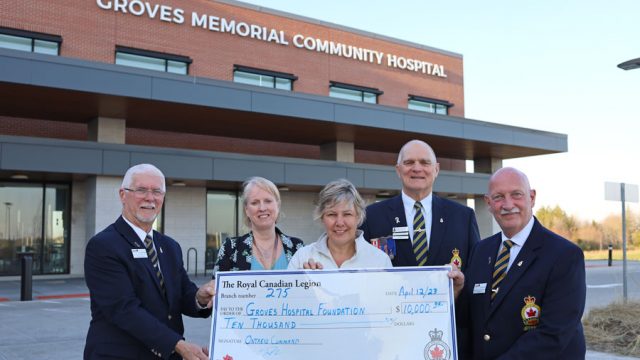 Groves Hospital Foundation recently received a donation of $10,000 from the Royal Canadian Legion Ontario Command Charitable Foundation.