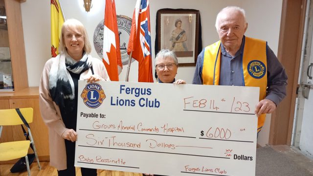 Donation – The Fergus Lions Club presented Groves Memorial Community Hospital with a cheque…