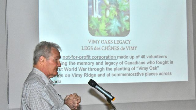 FERGUS - Bob Domoney of the Vimy Oaks Legacy Corporation presented a NeighbourWoods Tree Talk at the Fergus Legion on Nov. 30. Domoney relayed the story of a remarkable project that memorialized Canadians who fought in WWI.