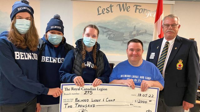 Donation – The Royal Canadian Legion Fergus branch presented a cheque for $2,000 to Belwood Camp…