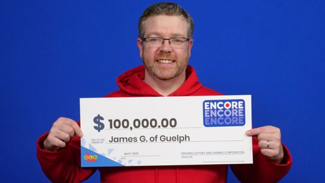 GUELPH – James Gill of Guelph matched the last six of seven Encore numbers in exact order in the March 5 LOTTO 6/49 draw and won $100,000!