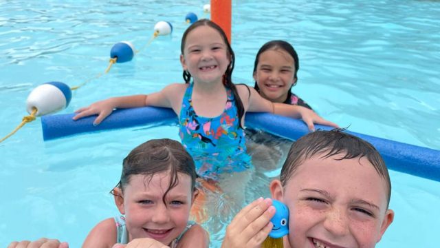 Summer’s going swimmingly – Brenna and Callum Sweeting, front, along with Nyima and Dawa…