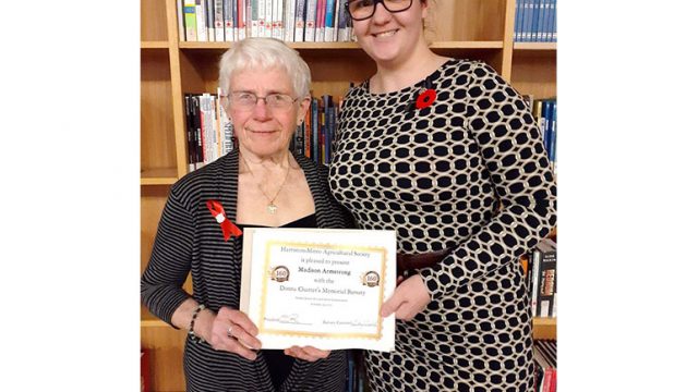 Memorial bursary - The Harriston-Minto Agricultural Society selected Madison Armstrong of Clifford as the recipient of the society’s Donna Charters Memorial Bursary.