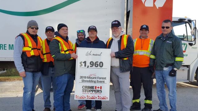 Crime shredders - Crime Stoppers Guelph Wellington’s (CSGW) 2019 Mount Forest shredding event raised the most money in the history of the event, with $1,960 in payments and donations coming in.