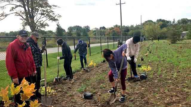 Youth options – Recent tree and shrub planting with organizers and students in the Youth…