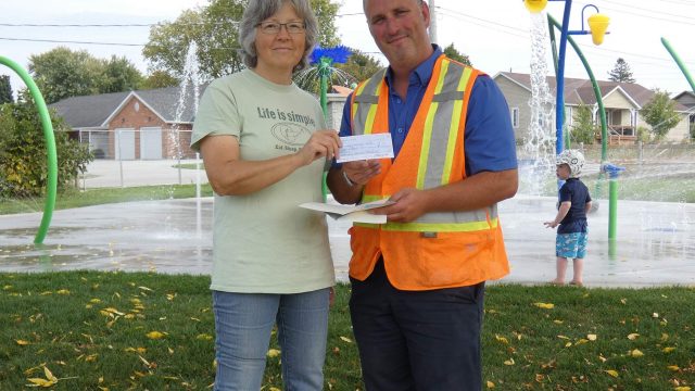 Spalshpad donation - Mount Forest Horticultural Society president Colette MacTavish recently presented a $1,500 cheque to the Township of Wellington North for landscaping around the new splashpad.