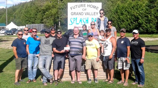Splash pad donation - The Grand Valley & District Volunteer Firefighters Association and the Firefighters Ladies Auxiliary recently donated $7333 to the Grand Valley Splash Pad.