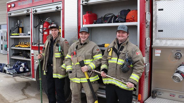 Safety first – Wellington North firefighters, from left: Cole Lamont, Nole Black, and Jeremy Benn…