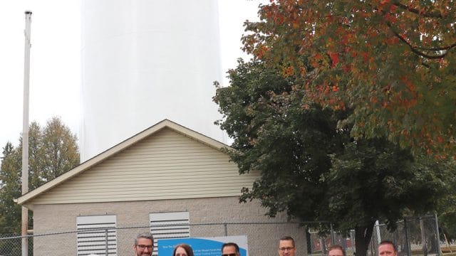 MOUNT FOREST – A modest-sized group gathered at the base of the water tower here on Oct. 13 to celebrate the completion of the three-month refurbishment project.