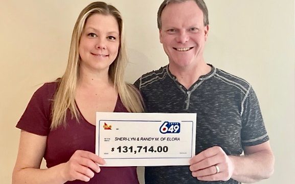 TORONTO – Sheri-Lyn and Randy Mullin of Elora are $131,714 richer after winning the second prize in the Lotto 6/49 draw on April 10.