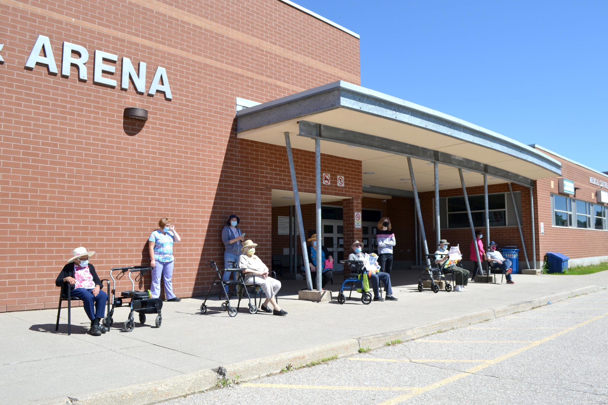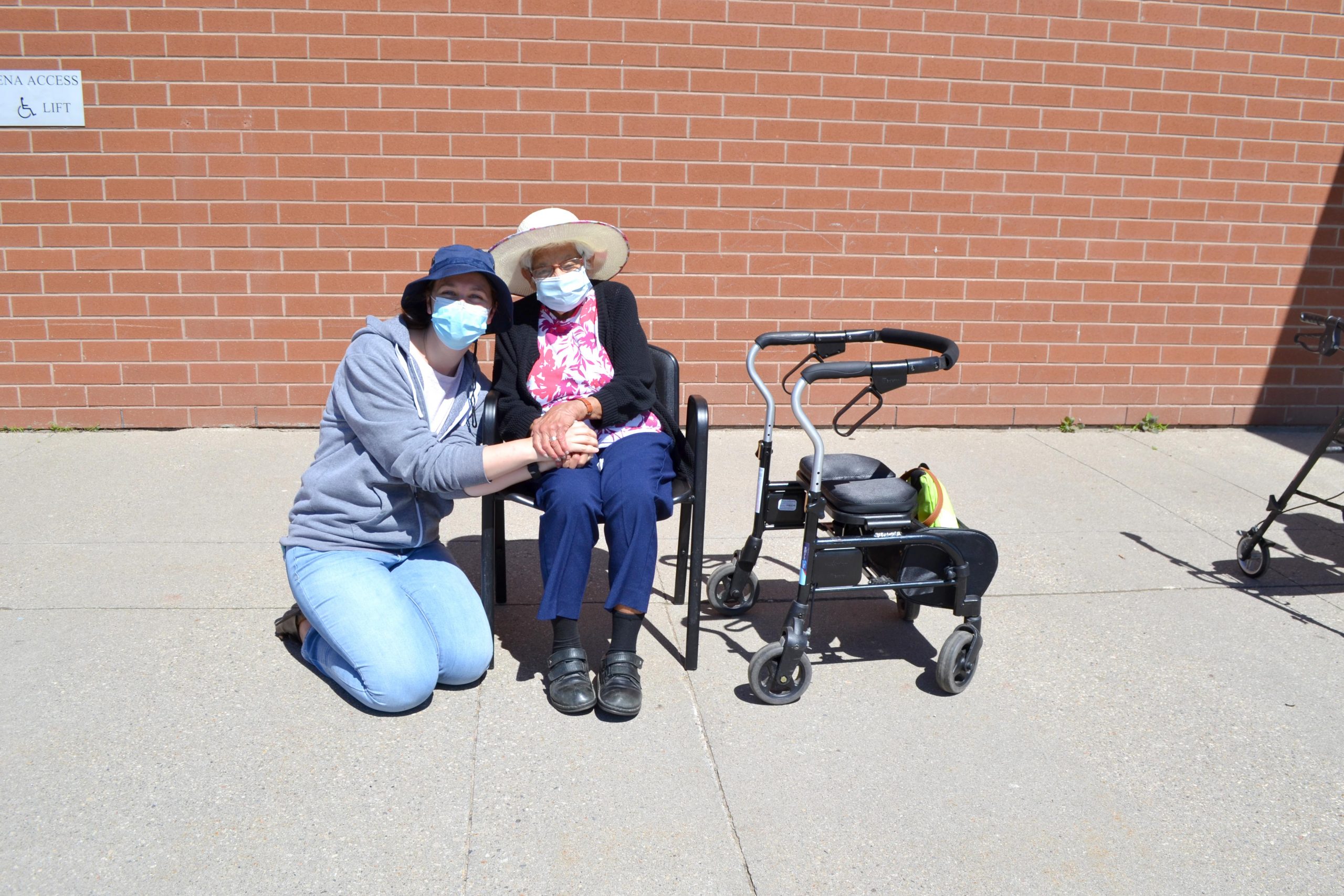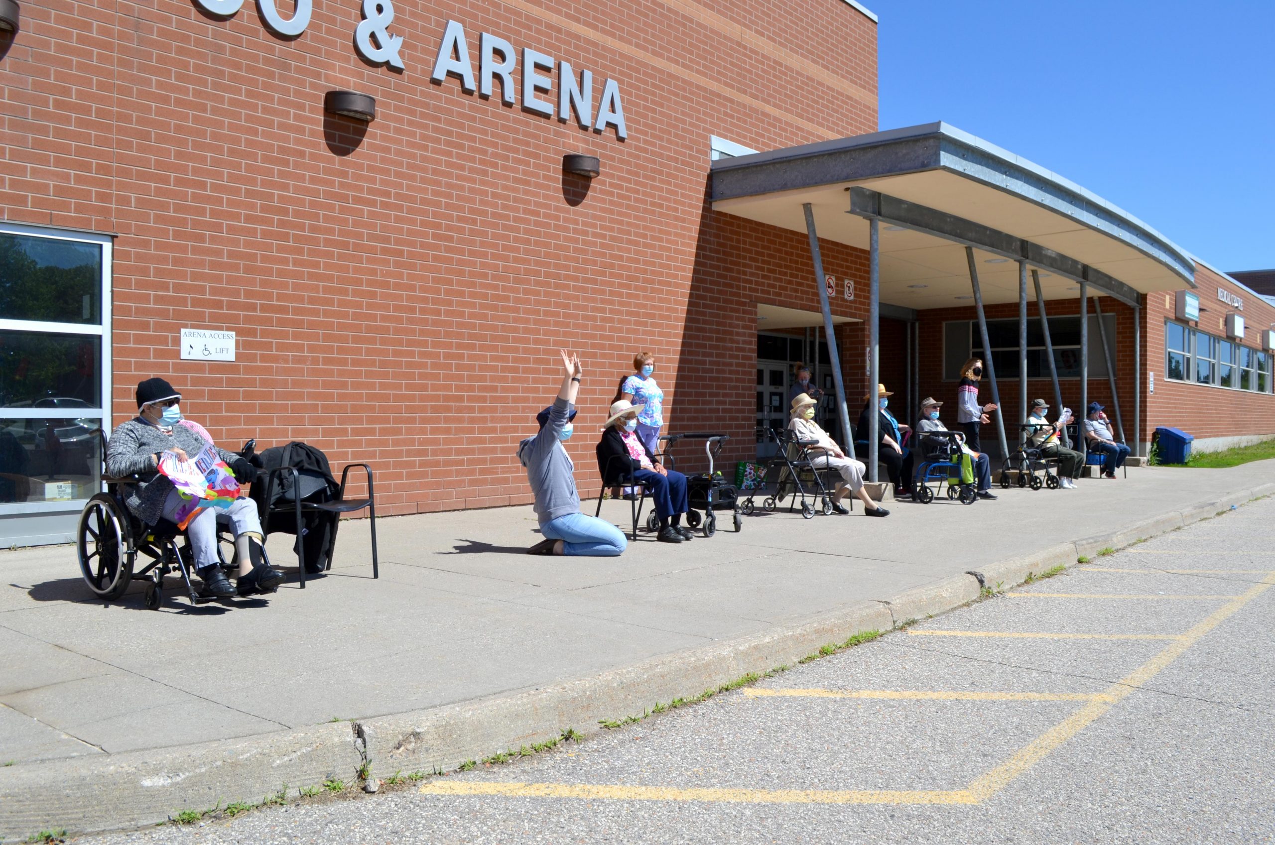 Six program participants sat spaced out front the centre entrance to view the event, held as part of Father’s Day celebrations.