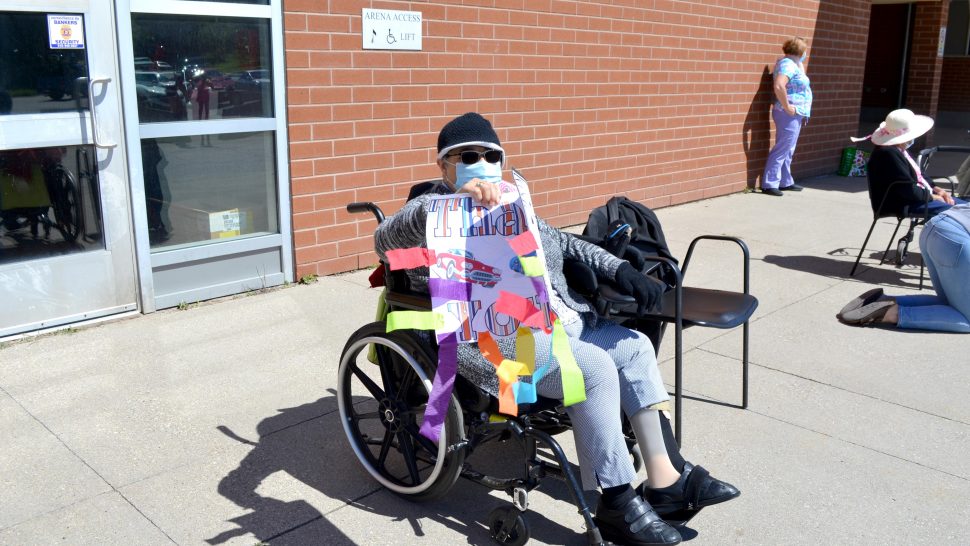 “We had six seniors, six feet apart because of COVID, and we made some homemade signs to say thank you and our seniors came out and enjoyed some fresh air, a good breeze and a trip down memory lane,” Johnston said.