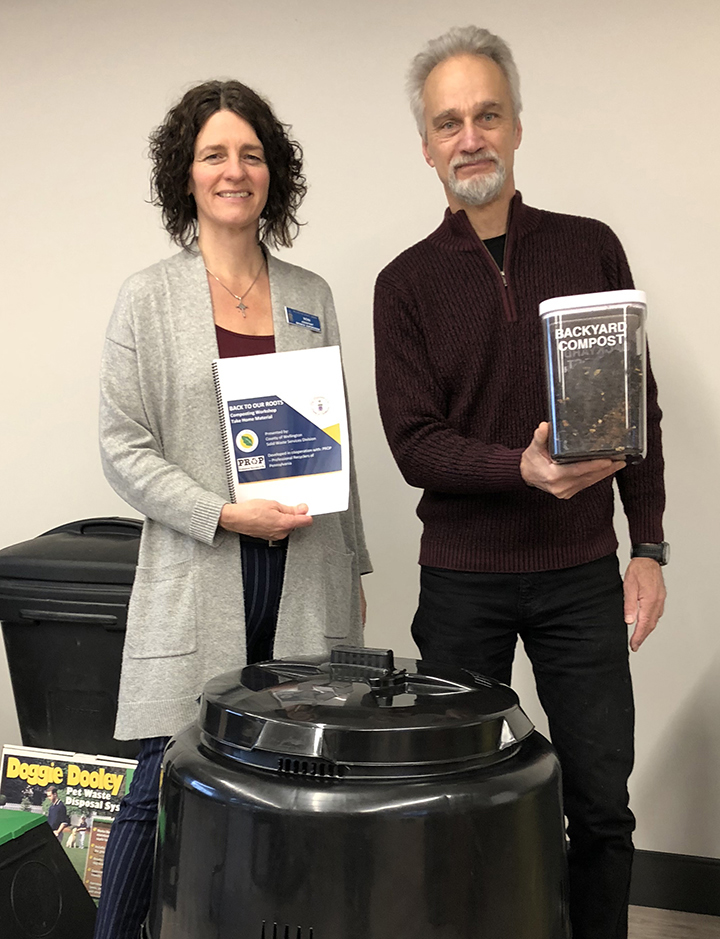 Assistant branch manager Noni Nixon and Wellington County horticultural consultant Don Prosser were at the Hillsburgh Library branch on April 27 offering insights into generating backyard compost. The workshop was provided via the Wellington County Solid Waste Services department. Photo by Mike Robinson
