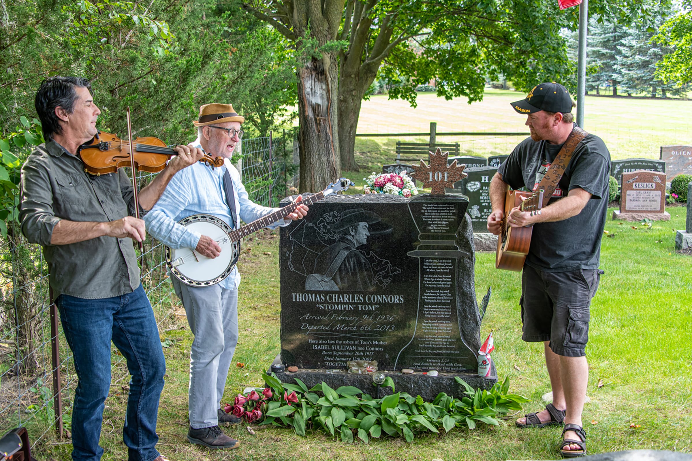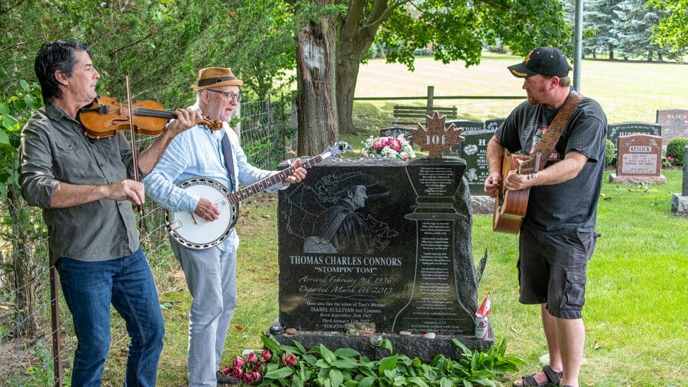 They stopped by the Erin cemetery on Sept. 16 to pay their respects to Connors by playing a few of his favourite classic tunes, accompanied on the guitar by musician and Erin radio host Bryce Butcher.