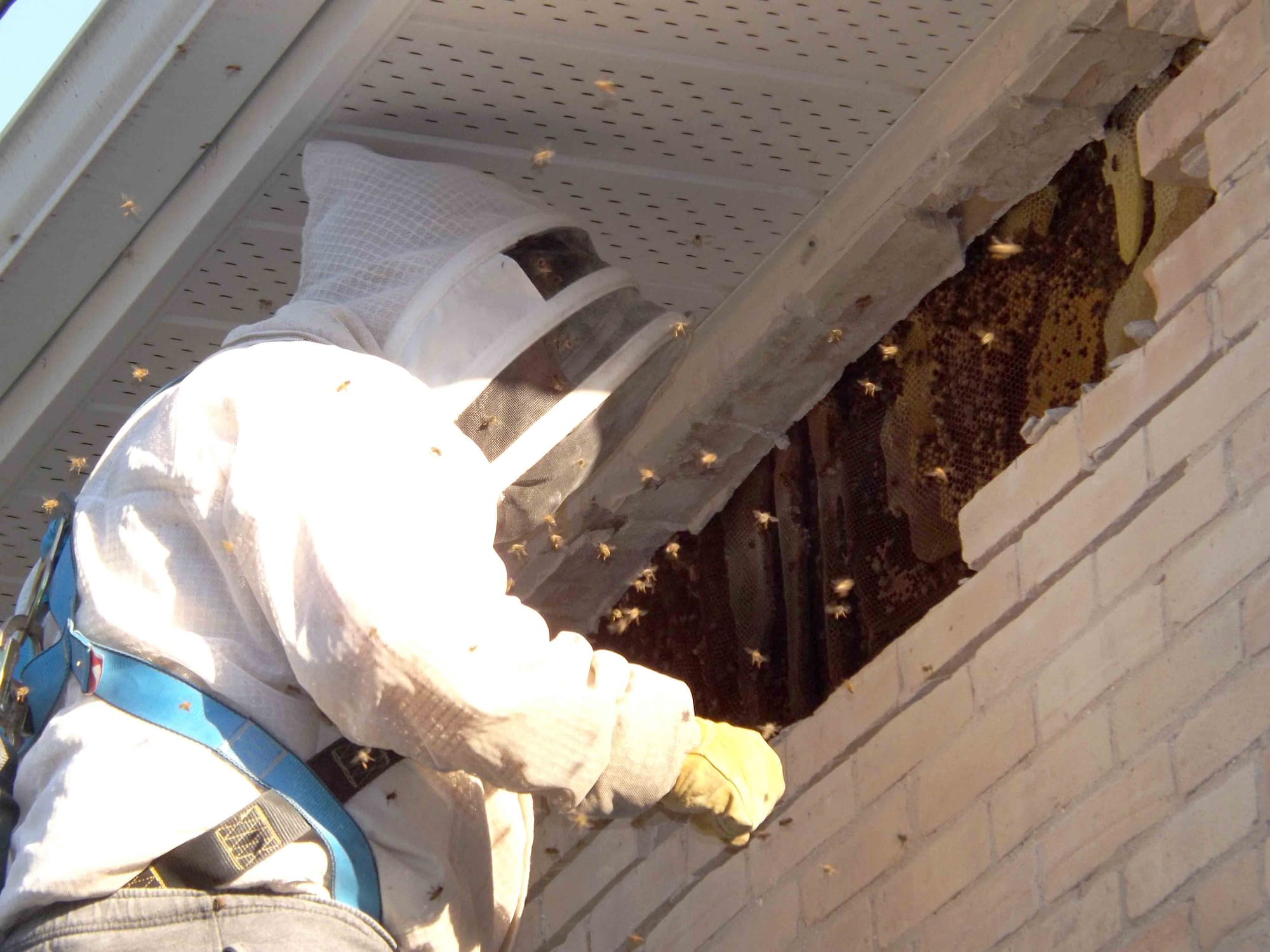 However once he got into the job, he discovered he couldn’t reach the bees through the attic access point and would have to go the more disruptive route of removing bricks from the outside of the Thompson’s home to reach the hive. He postponed the work until June 7.