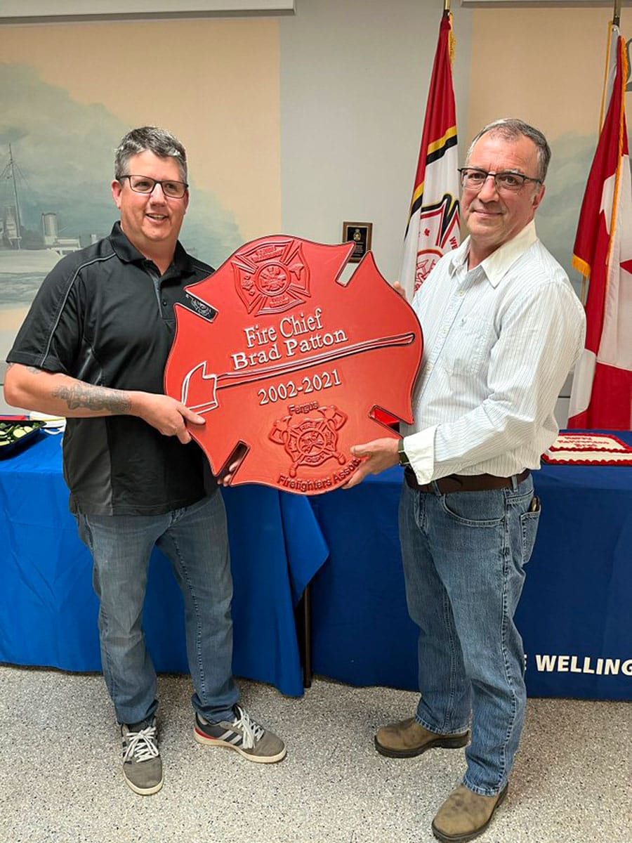 Belated send-off – Centre Wellington Fire Rescue Services held a belated retirement party on May 24 at the Fergus Legion for former fire chief Brad Patton, who retired a year ago but no party could be held due to COVID.