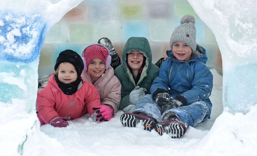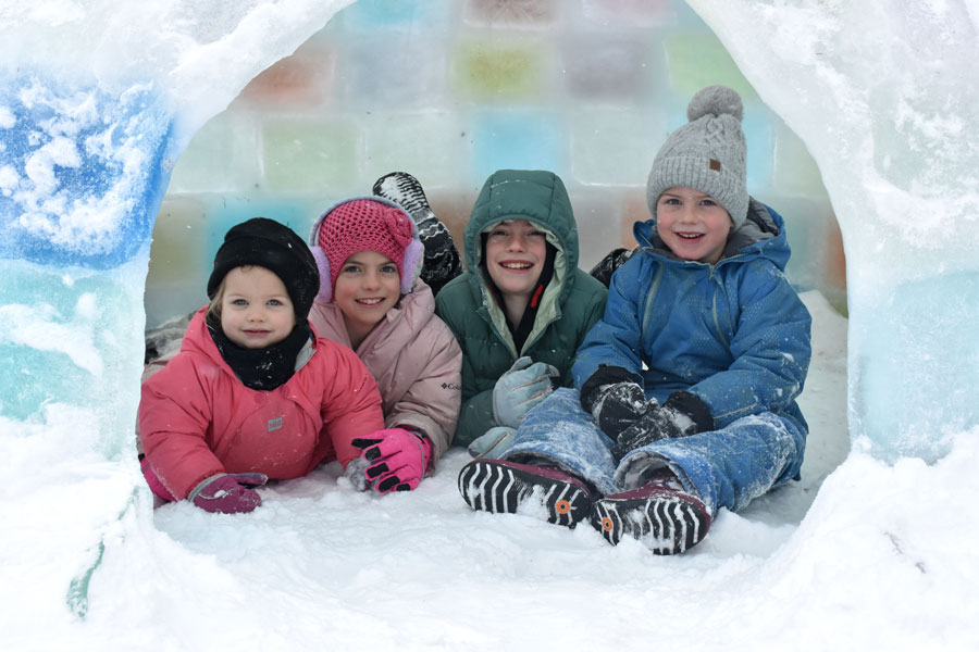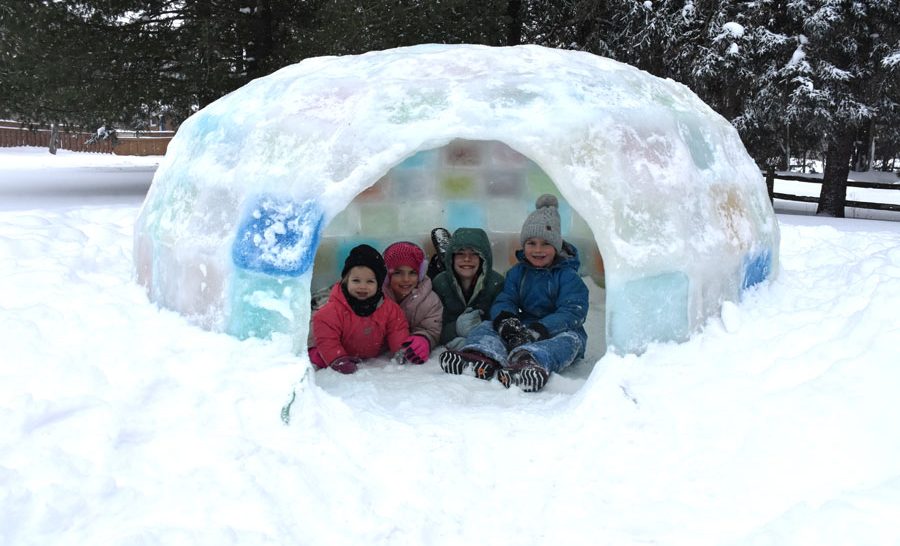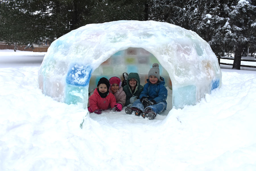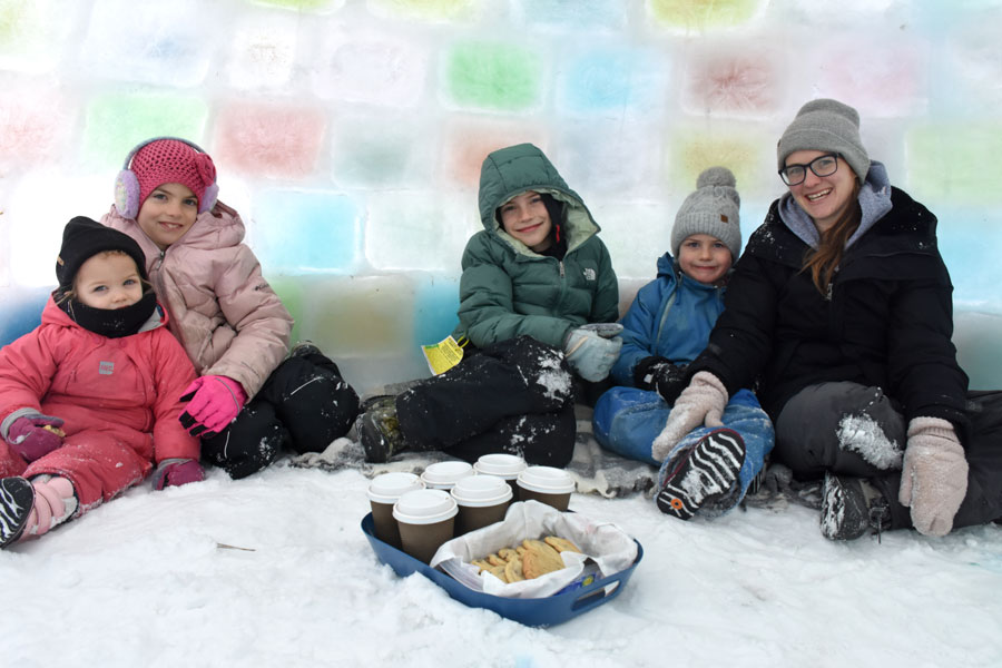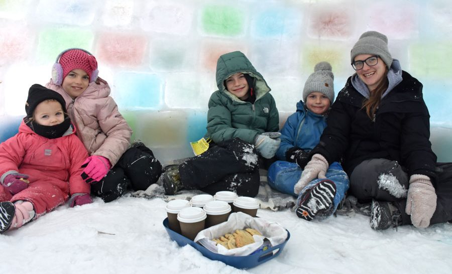 FERGUS – The Bellissimo family has created a colourful igloo on their front lawn in Fergus, a task that took a few weeks to accomplish. First they froze water and a bit of food colouring in lasagna trays to make the blocks and then assembled them with a “glue” made of water and snow. And now that it’s done, it’s a favourite hang out for Samantha, 2, Elizabeth, 8, Benjamin, 10, and Oliver, 6.