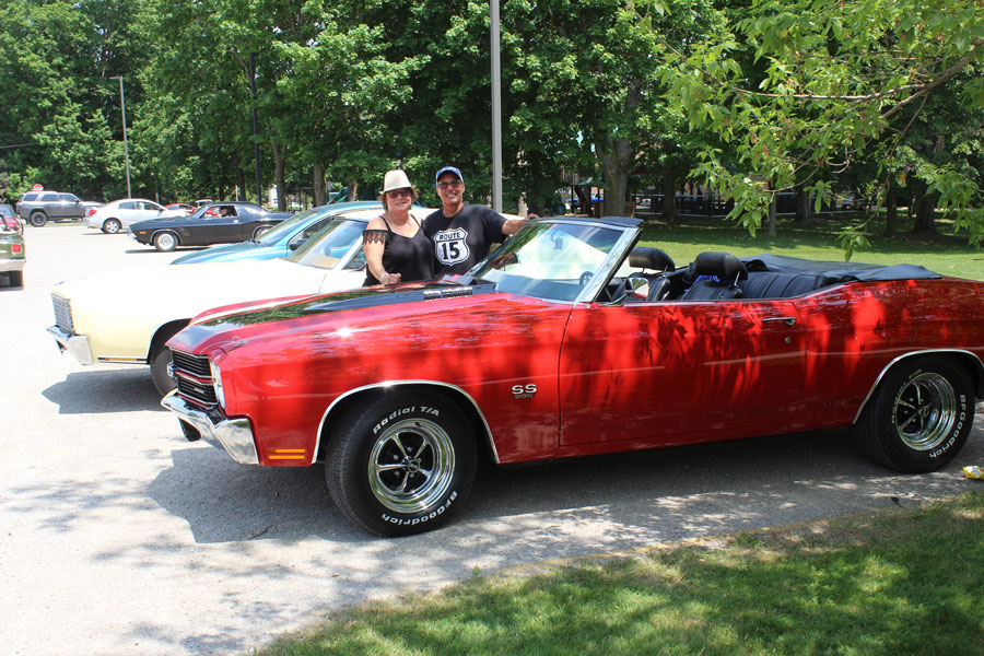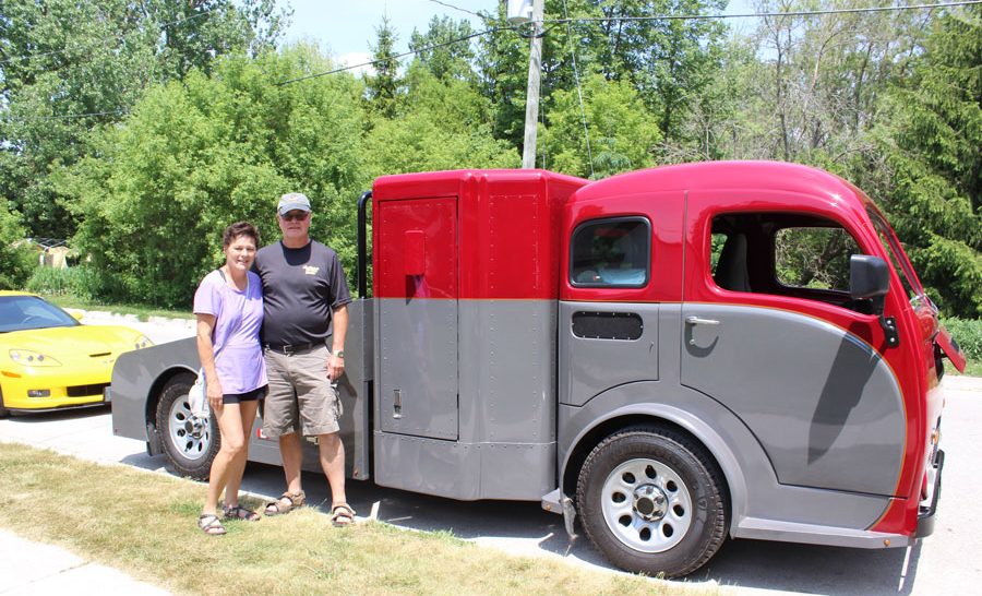 One of a kind – The Belwood and District Lions Club hosted the Belwood stop on the Hot Rod Tour and provided food and drinks for participants. The tour ran from London to Goderich from June 2 to 5. Donna and Dave Cook with a truck Dave put together himself. The cab is from ‘57, a White vehicle likely used as a garbage truck. Inside is a 5.3 litre engine from a 2009 Chevrolet Express van. Dave is part of the London Auto Mechanics Car Club. Everything was custom built and took about 18 months to complete, and Dave did everything himself but the paint job.
