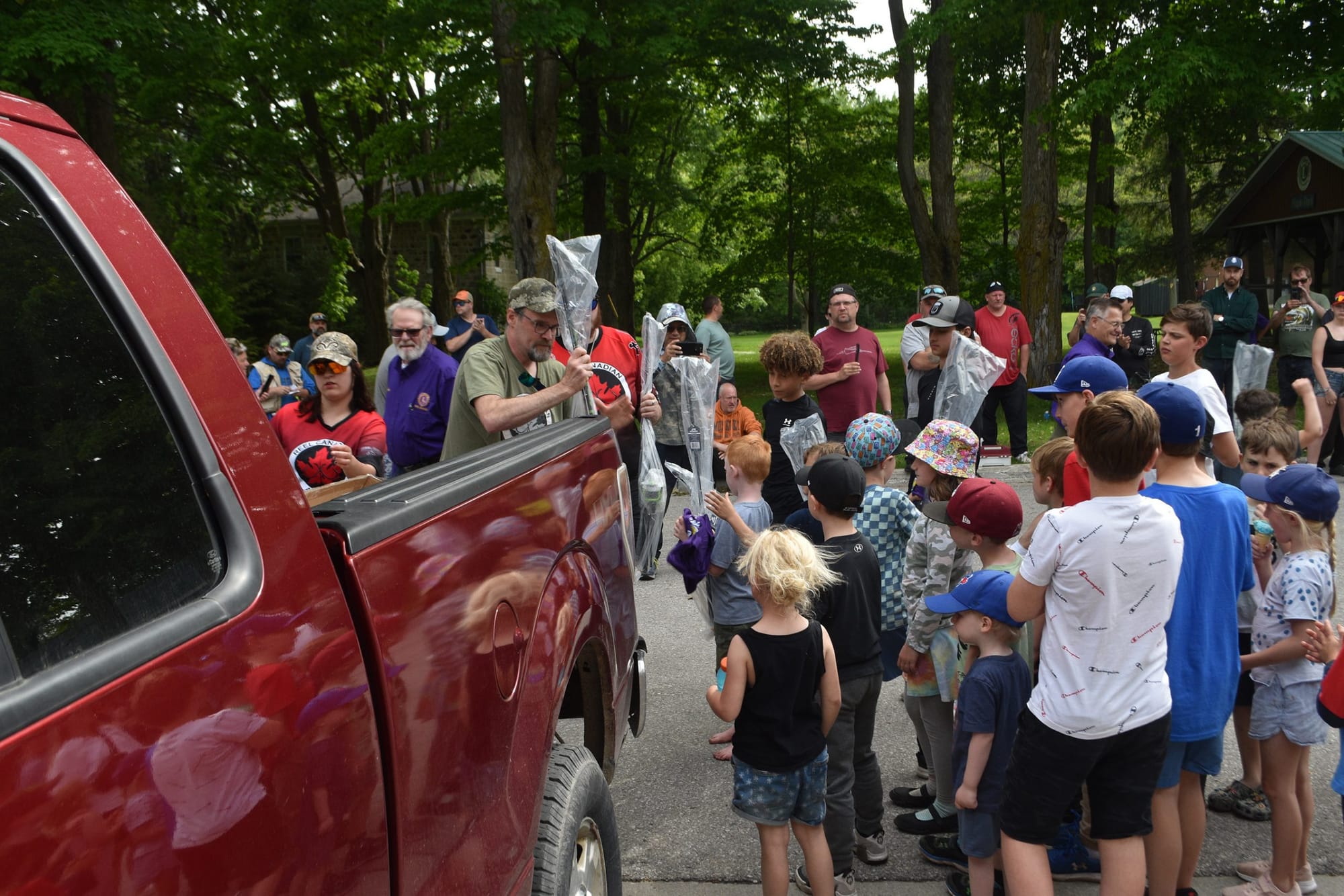 Children and youth receiving their rods at the beginning of the derby.