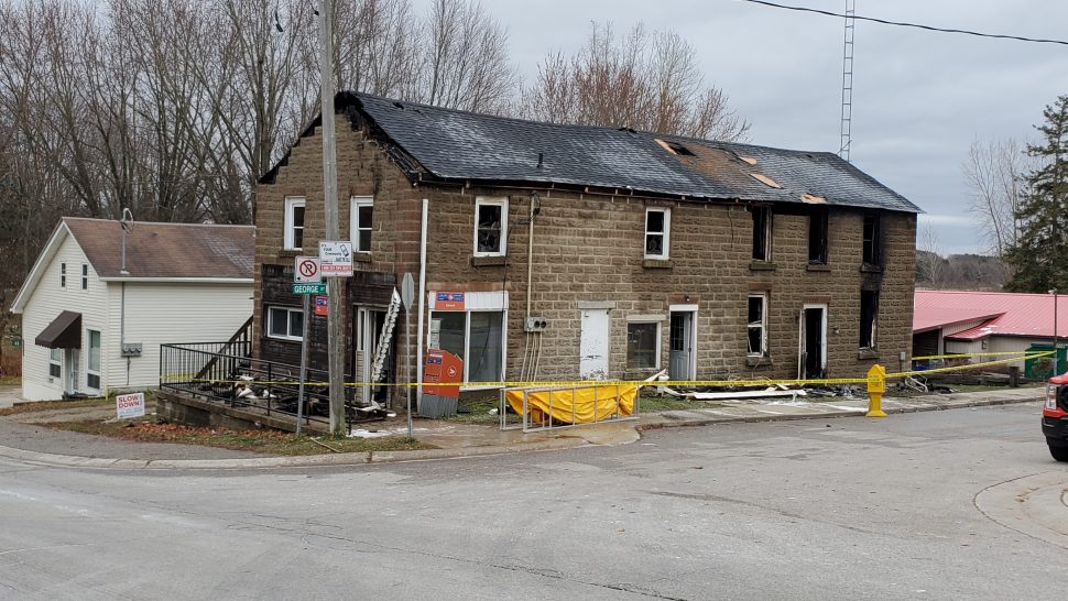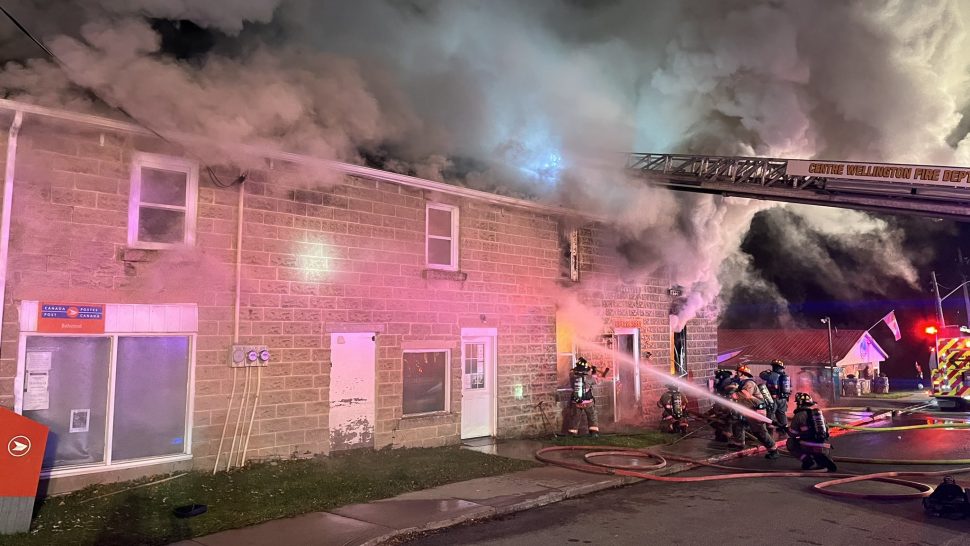 Centre Wellington firefighters responded to a report of a multi-unit structure fire at 5 George St. in Belwood shortly after midnight and discovered the post office and units above ablaze.