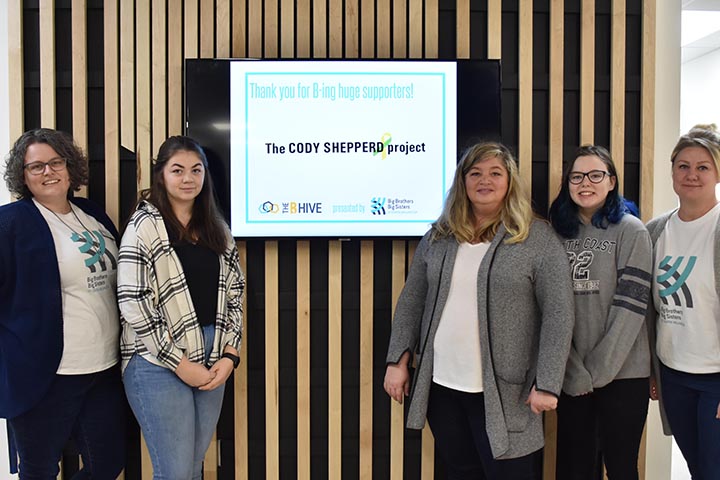 Welcome to the Bee Hive – Staff, Youth Action Council members and local residents gathered for the March 14 open house of the new Centre Wellington Big Brothers Big Sisters Bee Hive youth hub located in the Skyline Community Hub at 900 Tower Street South. From left: Kristen Drexler, Ashley Baliva, Stephanie Bonneville, Melissa Ladds, Jennifer Kraus, Leah Valedis, Josephine Collins and Mathew Chicago.