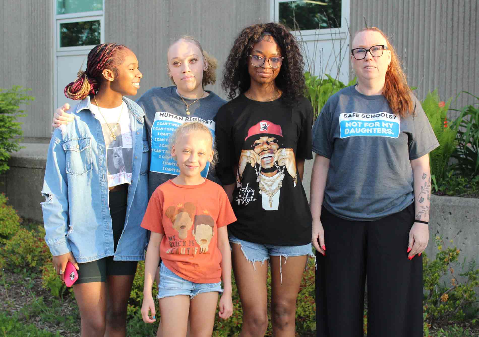 Grade 11 student Tia Powers and recent graduates Angel Powers and Mak (who is using a nickname for privacy) were among those attending the meeting.