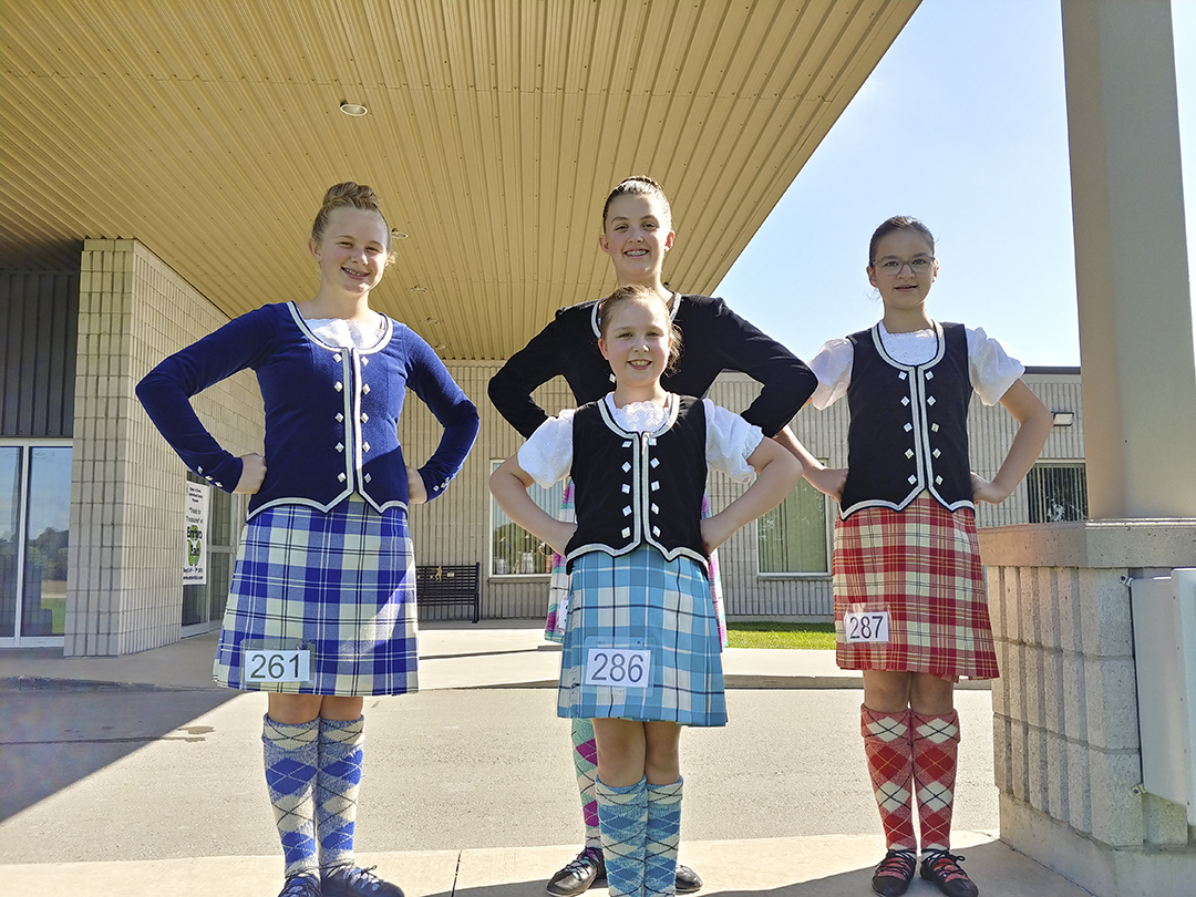 Dancers – In the fall of 2018, dancers from Blue Bonnet Lassies School of Highland Dance competed in two competitions. At the South Western Ontario Highland Dance Competition in Embro, Ainsley Stewart placed second in fling and flora, and third in sword and Seann Truibhas, earning the runners-up overall trophy. Avaline Booth placed fourth in fling, fifth in sword, and sixth in Seann Truibhas. Ella Murray placed second in sword, third in fling and flora, and fourth in Seann Truibhas. At the last competition of the season dancers competed at the Western Ontario Highland Dance Association Milton competition, Kori Stewart placed sixth in lilt, Booth placed fifth in lilt and Ashley Elliott placed second in fling. Dancers begin their next competition season in March and will be attending the Scotdance Canada Canadian Championships in Moncton, New Brunswick in July. From left: Murray, Booth, Ainsley and Kori. Submitted photo