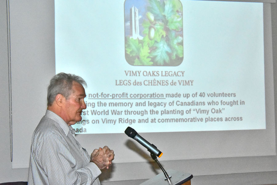 FERGUS – Bob Domoney of the Vimy Oaks Legacy Corporation  presented a NeighbourWoods Tree Talk at the Fergus Legion on Nov. 30. Domoney relayed the story of a remarkable project that memorialized Canadians who fought in WWI.