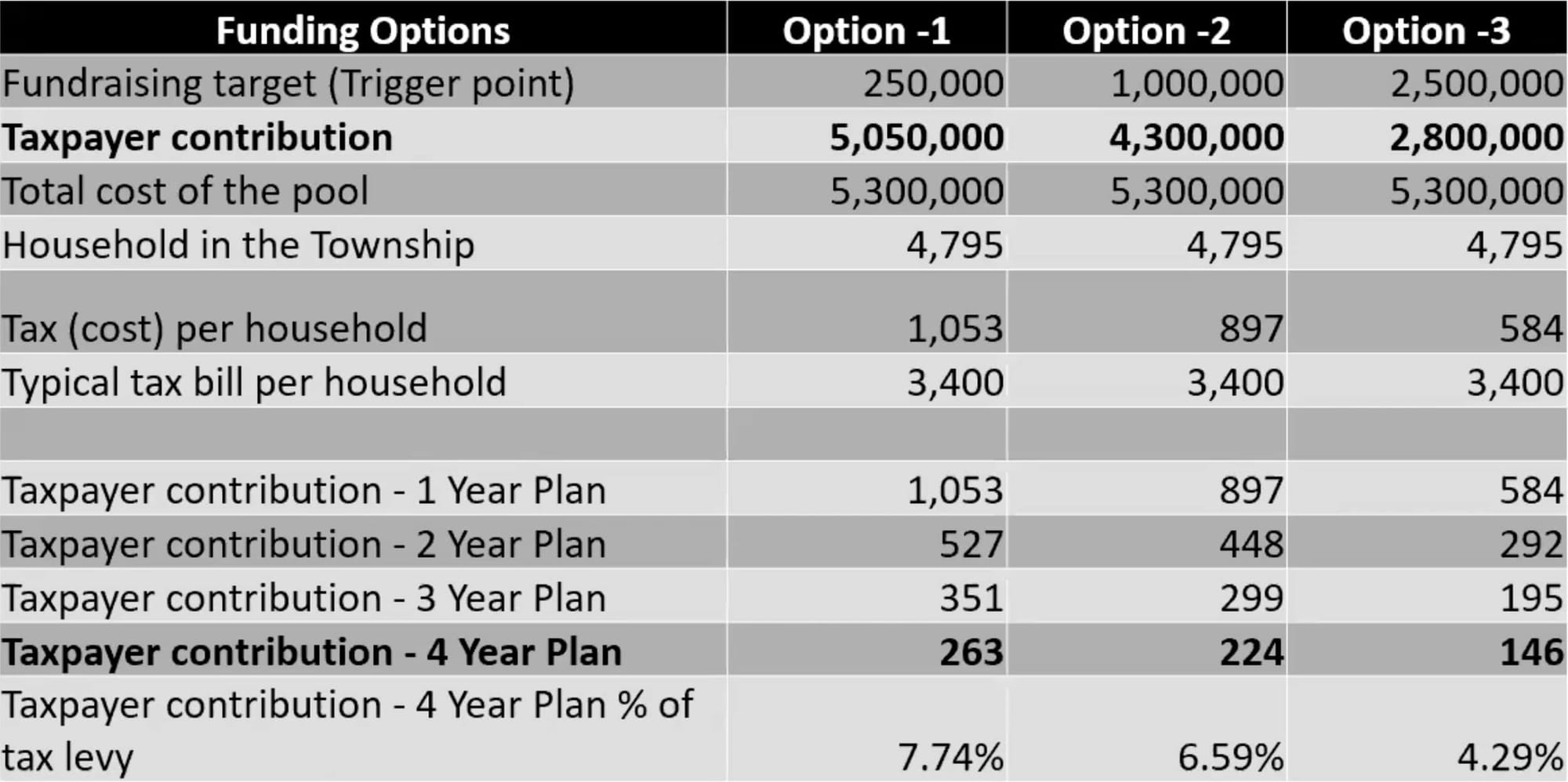 “As part of the [2023] budget, a clear direction around the township’s financial contribution and fundraising target are required for staff to move forward,” Lambert told council.