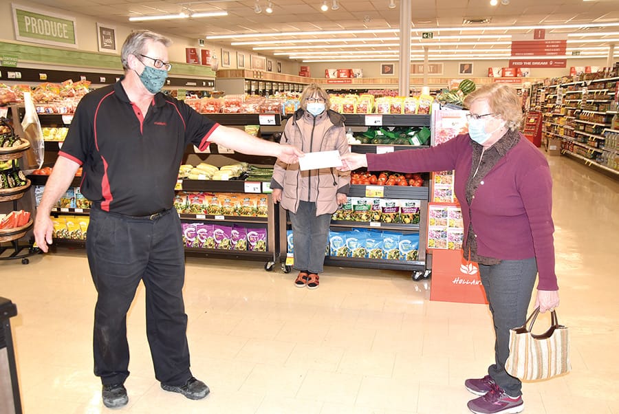 The Harriston Historical Society recognized essential workers and presented gift certificates for Tim Horton’s and Harry Stones Social House to each of the Harriston Foodland store’s 29 employees.