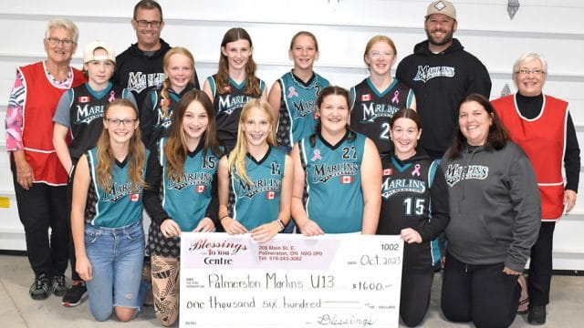 PALMERSTON – The Blessings To You Centre in Palmerston recently donated $1,600 to the Palmerston Marlins U13 team.