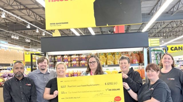 MOUNT FOREST – Mount Forest Legion representative Don Koehler presented a $1,500 cheque to Mount Forest Soccer Association representative Becca McFarlane.