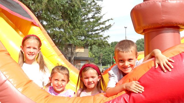 MAPLETON - From left: Natalie Cochrane, Elle Surnoskie, Paige Cochrane and Lucas Surnoskie had fun on the pirate ship bouncy castle during Canada Day festivities at the Drayton Fairgrounds on July 1.