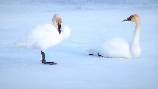 Swans are back – Trumpeter swans arrived in Mount Forest on March 21. This pair flew in March 21…
