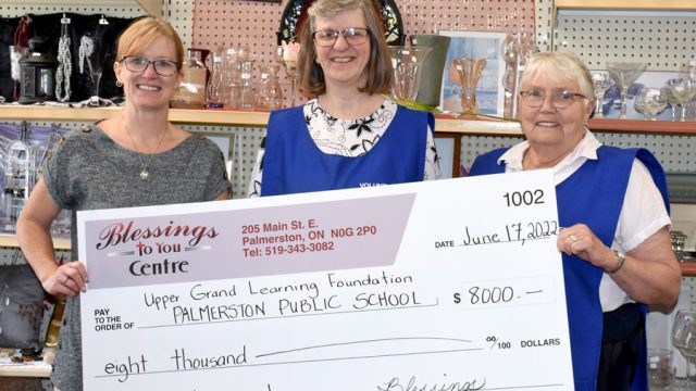 Playground contribution – The Blessings Thrift and Gift Store in Palmerston recently donated $8,000 toward the purchase of new playground equipment for Palmerston Public School.