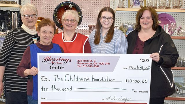Boost for youth – A $10,000 donation to the Children’s Foundation of Guelph and Wellington was made recently by the Blessings to You Centre in Palmerston.