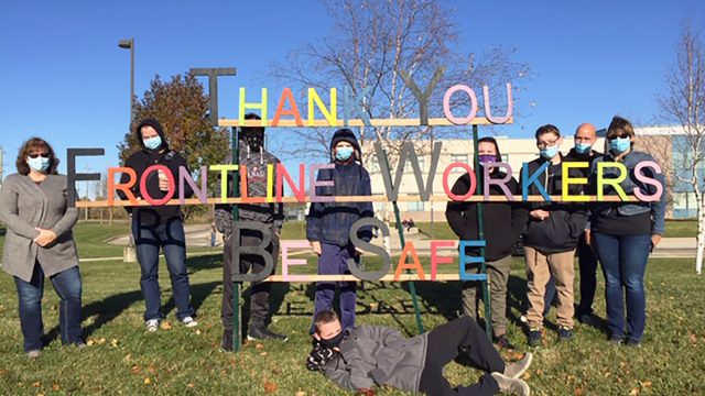 MOUNT FOREST – A group of students from Wellington Heights Secondary School in Mount Forest have installed a sign in front of the school thanking frontline workers for their dedication during the COVID-19 pandemic.