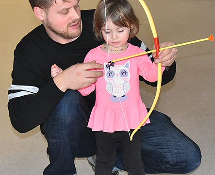 With help from her father Robert, two-year-old Soraya Ayres of Orangeville learned how to shoot a…