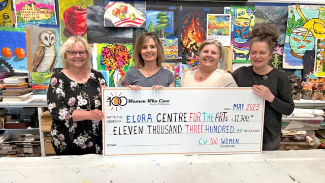 CENTRE WELLINGTON – On June 6, 100 Women Who Care Centre Wellington presented a cheque for $11,300 to the Elora Centre for the Arts.