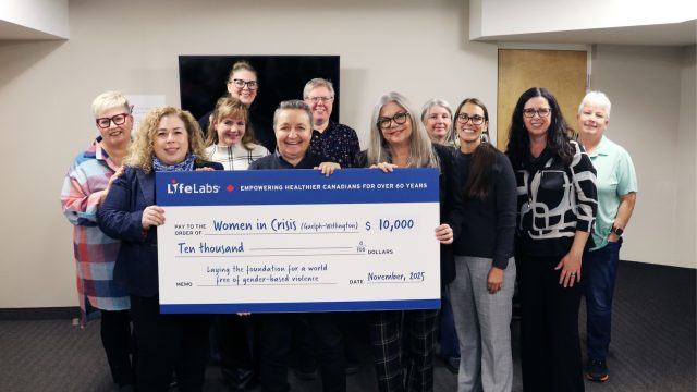 GUELPH – LifeLabs donated $10,000 to Guelph-Wellington Women in Crisis on International Day for the Elimination of Violence Against Women (Nov. 25).