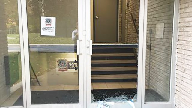 OPP: glass door at Rockmosa smashed with pellet gun or slingshot