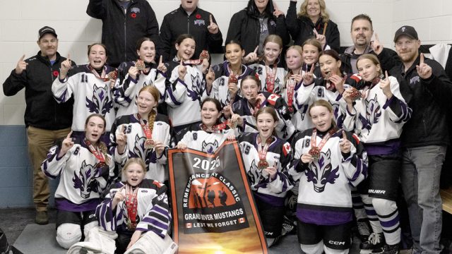 CENTRE WELLINGTON – The U15B Grand River Mustangs team was the only local team to bring home a gold medal last weekend at the Remembrance Day Classic tournament in Centre Wellington, which included 56 teams and over 900 female athletes.