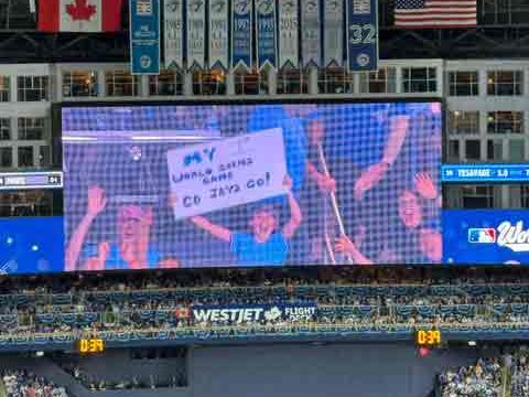 TORONTO – Callum Sweeting was on the big screen at game one of the World Series at the Rogers Centre in Toronto on Oct. 24.