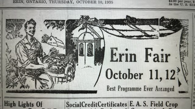 Agricultural society staged inaugural Erin Fall Fair in 1950