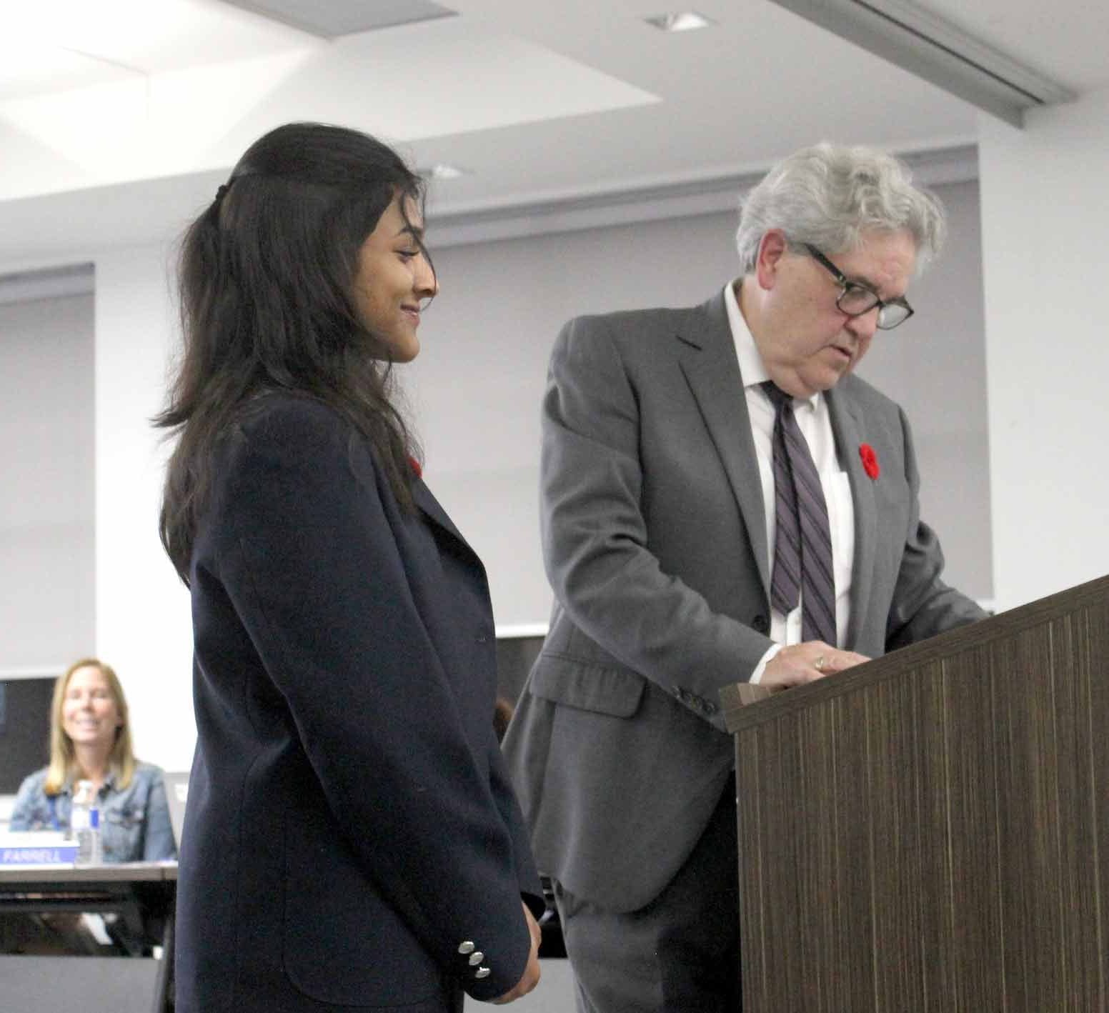 Trustee Joe Tersigni presented Jinu with the VIP award and read out a glowing summary of Jinu’s “hard work, dedication and outstanding achievements in both her academic pursuits and contributions to the Lourdes school community.”