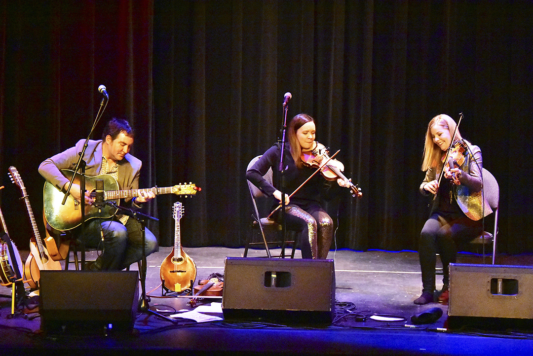 Coig, a high-energy quartet from Cape Breton that performs Celtic music, appeared at the Fergus Grand Theatre on April 25. Members of the quartet shared stories on what inspired them to write songs and a bit of their history. Coig has won numerous Canadian awards and a Juno nomination. Photo by Bill Longshaw