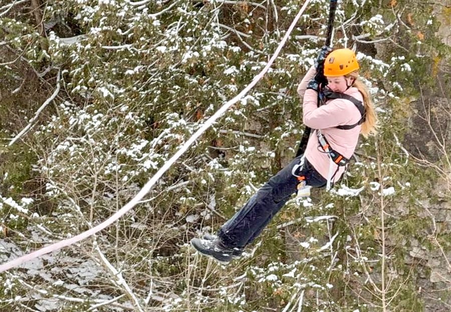 ELORA – On Jan. 2, members of the Centre Wellington Children’s Drama Club (CWCDC) had the Elora Gorge as their stage. The CWCDC is a parent-led cooperative running two weekly drama clubs led by professional directors, each serving 22 children. Through rehearsal and performance, club members learn teamwork, discipline and the joy of expressing themselves, officials say. Last Friday’s adventure day was led by Frederick Schuett and Christa Niravong of Elora’s One Axe Pursuits with the aim of bringing the two groups of students together for a day of bonding and adventure featuring rappelling, zip-lining, a scavenger hunt, and more.