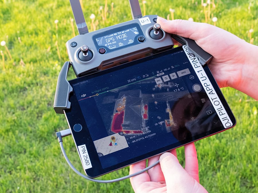 Above, the buzz of drones — a DJI Enterprise equipped with a thermal imaging camera and spotlight, and a DJI Maverik with a video camera — fills the air.