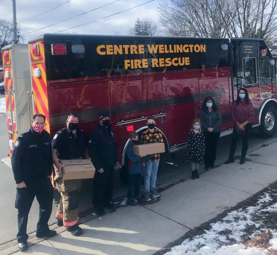 Special delivery – Centre Wellington firefighters delivered candy canes for all students at Elora Public School on Dec. 8. The department usually hands out candy canes at the Fergus and Elora Santa Claus parades, but this year the traditional parades were cancelled due to COVID-19. Instead, the firefighters decided to make candy cane deliveries to schools in Fergus and Elora.