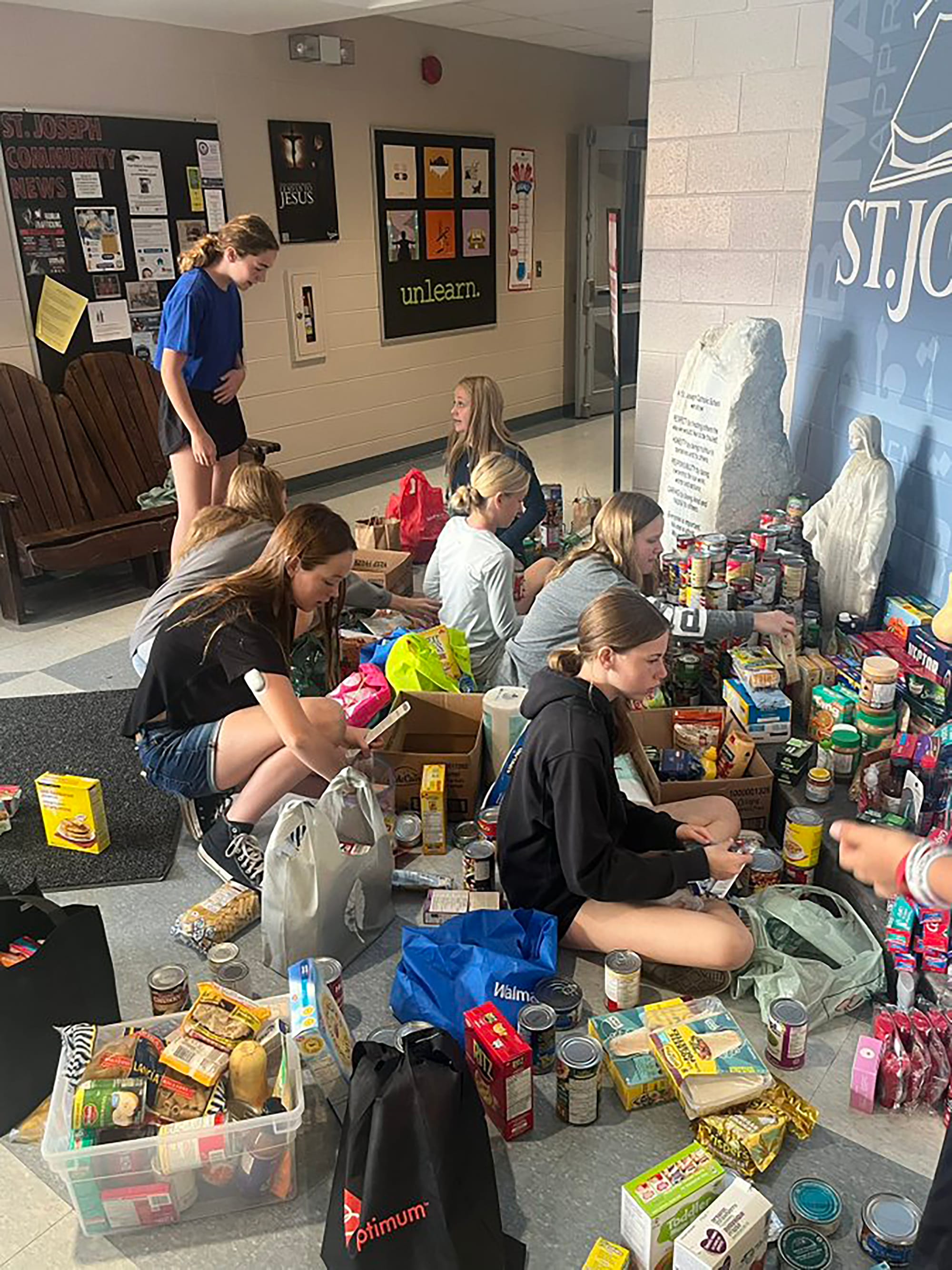 CENTRE WELLINGTON– St. Joseph Catholic School in Fergus and St. Mary Catholic School in Elora held its annual Thanksgiving food drive Oct. 2 to 5 with all donations going to the Centre Wellington Food Bank. St. Joseph collected and delivered over 2,000 items, totalling four car loads. The past three years Mrs. Quigley and Ms. O’Drowsky organized the event along with a student council of grade 8 students.